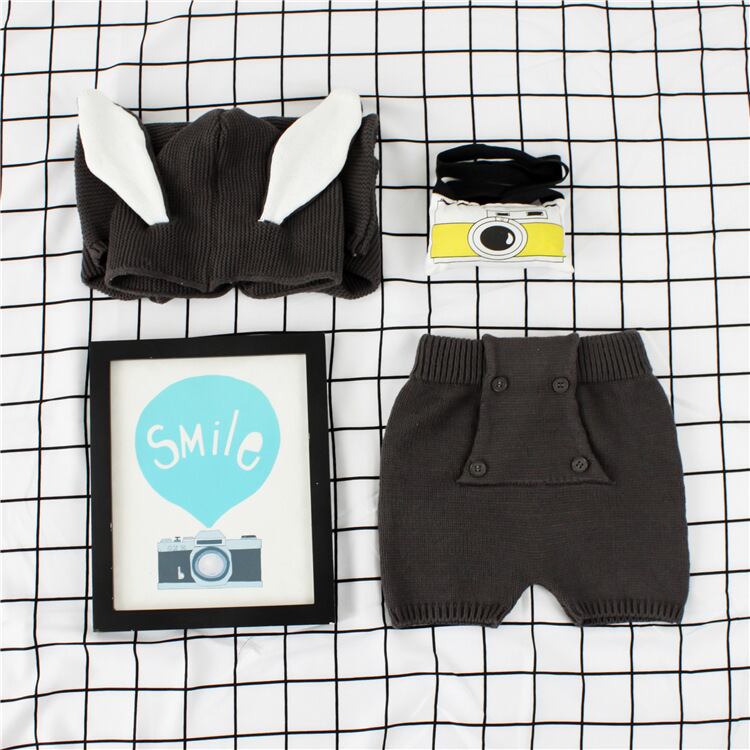 秋と冬の新しいウサギの耳の男性と女性の赤ちゃんかわいいフード付きジャケットショーツツーピースの赤ちゃんニットセータースーツ 大人ガーリー スウィート キュート カジュアル オータム 秋物 ウィンター 冬物 ブルマー mi5393361250001