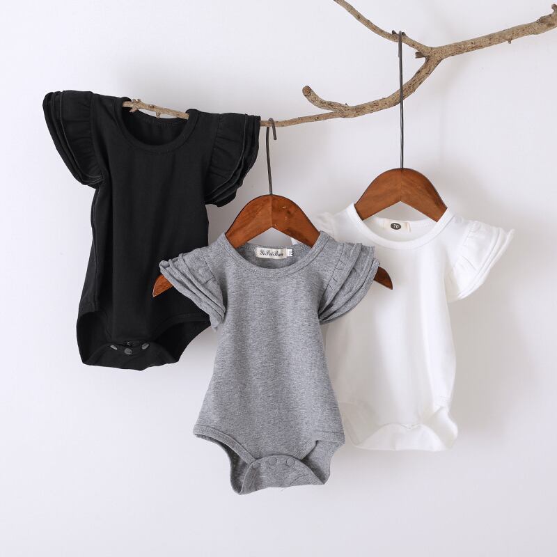 ins夏赤ちゃん子供ソリッドカラーボトムスTシャツフライングスリーブトライアングルロンパースロンパースジャンプスーツワンピーススーツバッグおなら サマー 夏物 mi539986785781