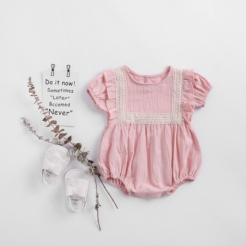 赤ちゃんロンパース夏の女性の赤ちゃんプリンセス半袖ロンパース菌レース三角バッグおなら服ワンピース服 サマー 夏物 mi5314776591665