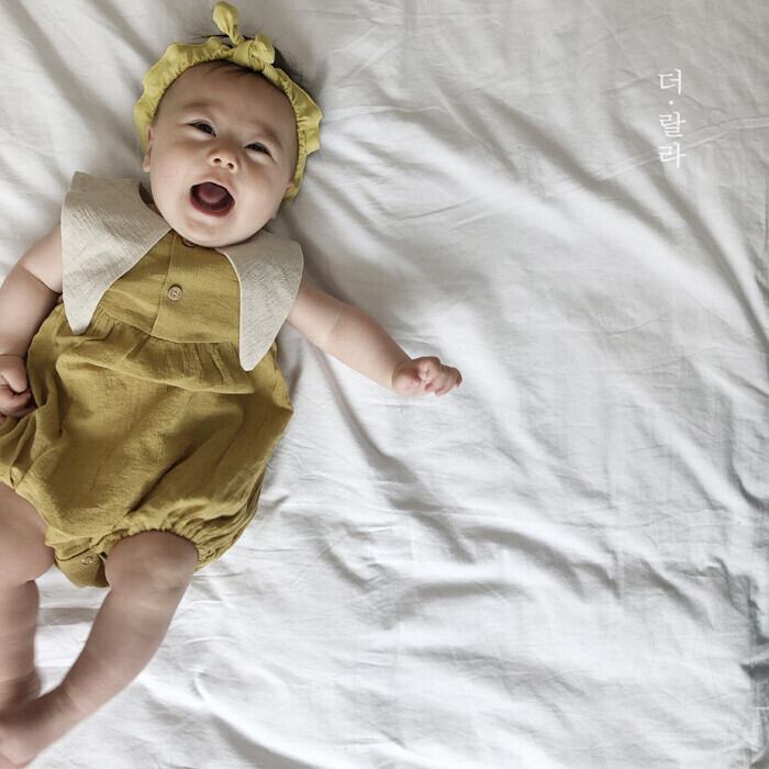 ベビー服綿とリネンノースリーブクロール服男性と女性赤ちゃんかわいいルーズファーロンパースジャンプスーツヘアバンド付き コットン 大人ガーリー スウィート キュート カジュアル mi5331380387470
