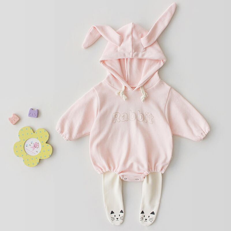 春と秋の赤ちゃんの男性と女性の赤ちゃんのウサギの耳三角ロンパース長袖コットンロンパースバッグおならワンピース ロング スプリング 春物 オータム 秋物 mi5398017094693