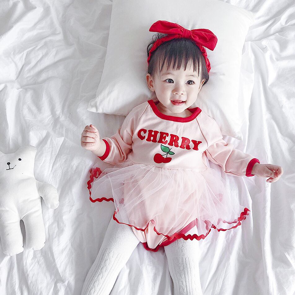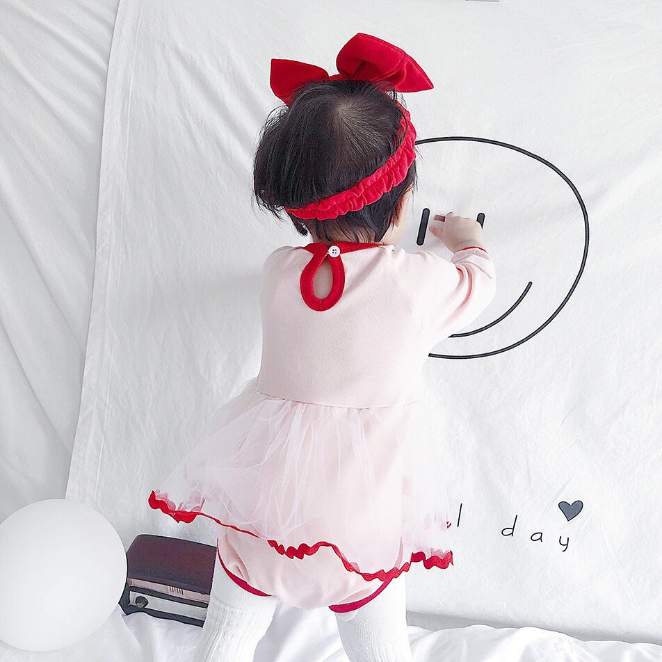 春と秋の赤ちゃんの長袖の王女のレースのメッシュのドレスの赤ちゃんの王女のドレス百日古いドレス ロング レッド スプリング 春物 オータム 秋物 mi5314697052091