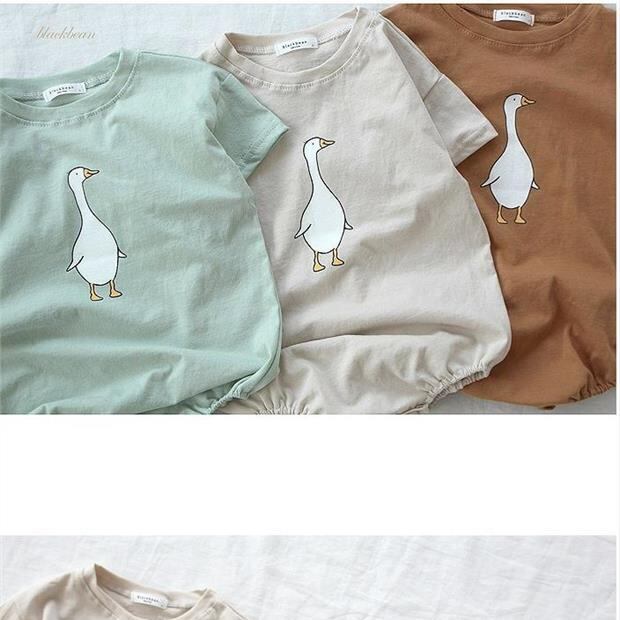 南の同じ赤ちゃんの夏の半袖のロンパースの三角形のバッグおならの服の男性と女性の赤ちゃんの漫画のアヒルのワンピースのロンパース サマー 夏物 mi5326746609275