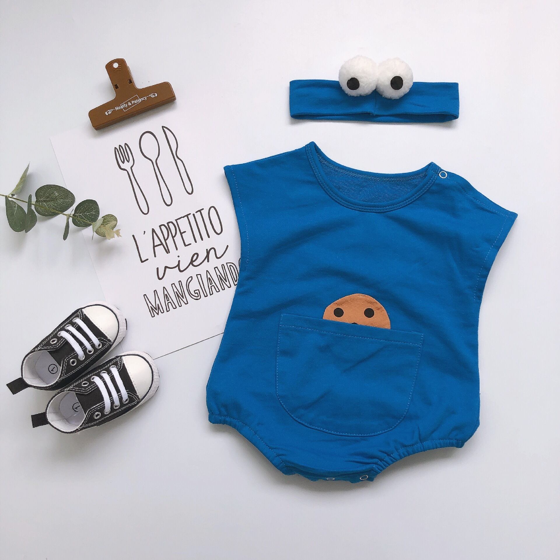 夏の綿の男性と女性の赤ちゃんの三角形のバッグのおなら服大きな目ヘアバンド幼児ワンピースロンパースクライミング服潮 コットン サマー 夏物 ヘアアクセサリー mi5384982135963