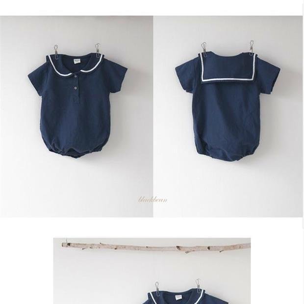 赤ちゃんカレッジスタイルのワンピースの男の子の夏の海軍薄いロンパーストライアングルロンパース幼児バッグおならの服 サマー 夏物 mi536433785401