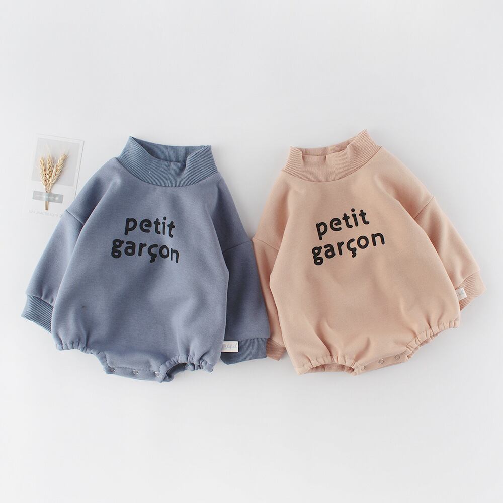赤ちゃんの秋と冬のモデルの小さなタートルネックのセーターロンパースの男性と女性の赤ちゃんプラスベルベットのエグニーな雰囲気の三角形のロンパースロンパースの潮 オータム 秋物 ウィンター 冬物 mi5372235634594