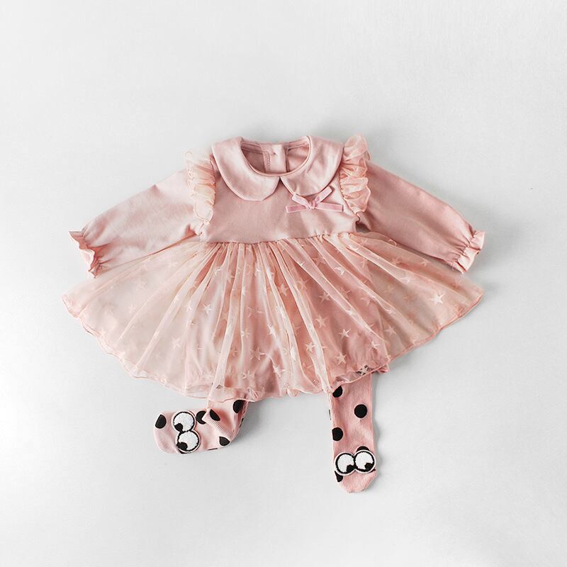 春の赤ん坊の赤ん坊の100日間のドレスの長袖のネット糸pengpengドレスコットンロンパースロンパース ロング スプリング 春物 mi5380146549223