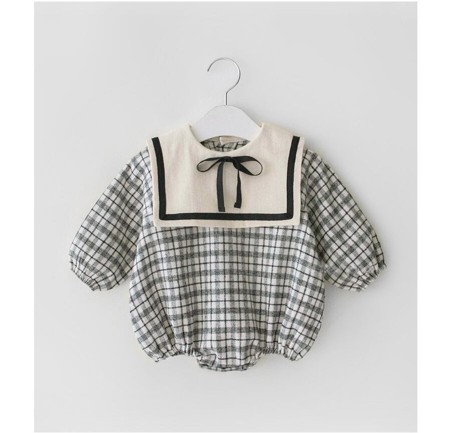 春と秋の赤ん坊の長袖の英国のチェック柄三角バッグおなら赤ちゃん海軍風ロンパースロンパース王女 ロング スプリング 春物 オータム 秋物 mi5342537791270