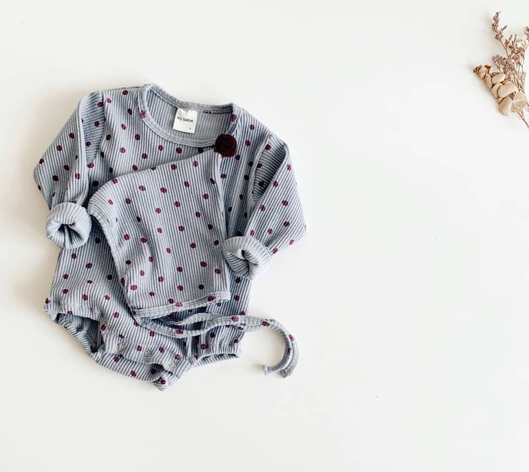 春と秋の男性と女性の赤ちゃんドットロンパース赤ちゃん三角形バッグおなら服登山服ワンピースピットコットンファッション スプリング 春物 オータム 秋物 mi5394338839418