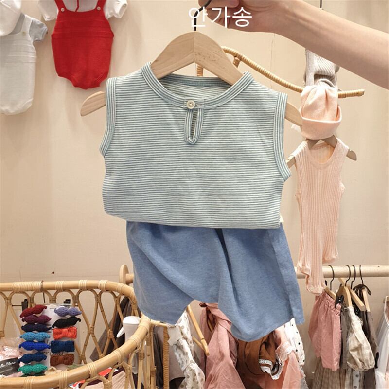 夏の子供たちの男の子と赤ちゃんのカジュアルなストライプの綿のTシャツショーツハーレムパンツスーツ赤ちゃんツーピースの潮 コットン サマー 夏物 ブルマー mi5335928628462