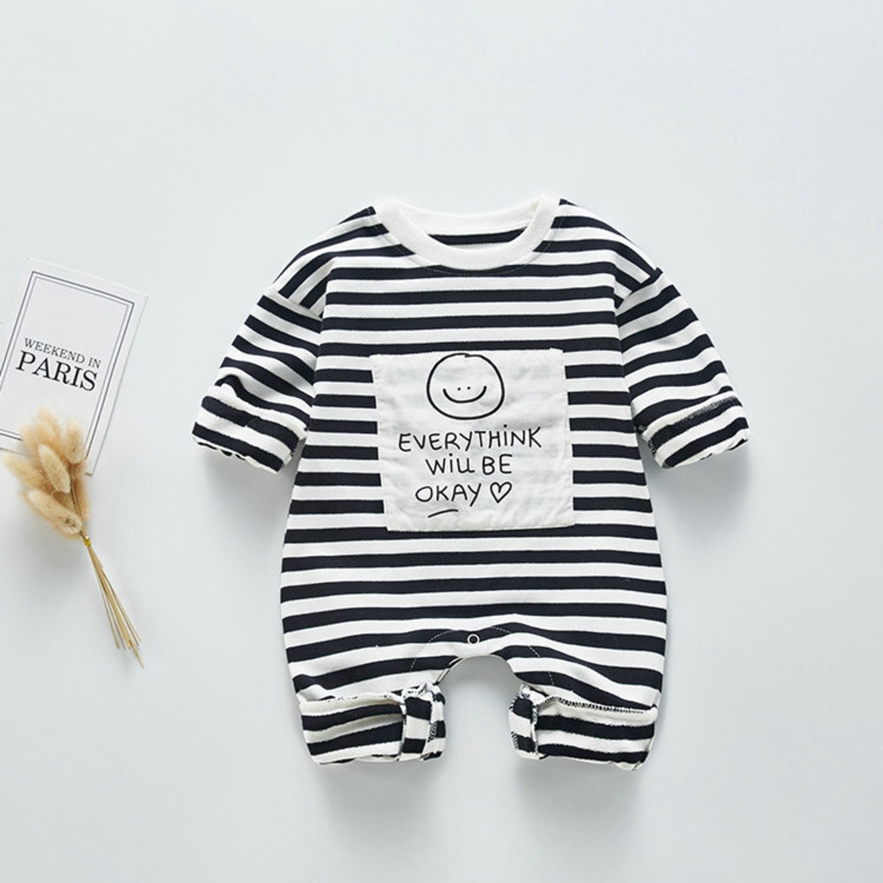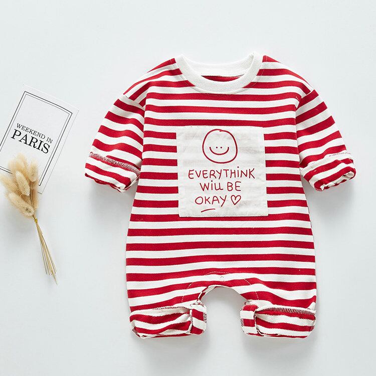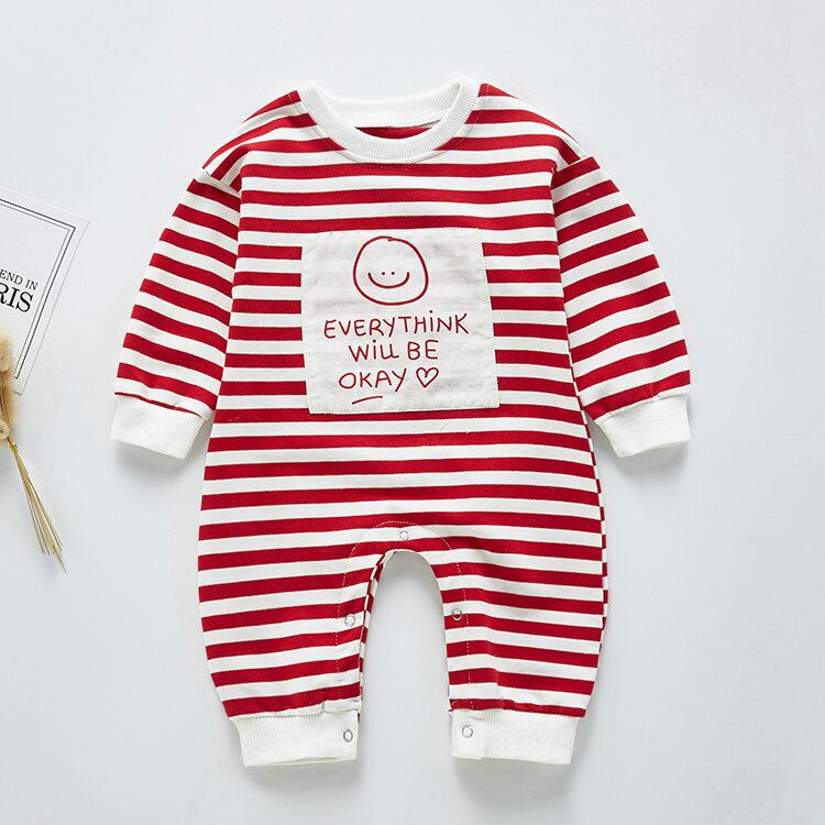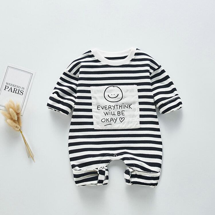 春と秋の赤ちゃんonesies男性と女性、赤ちゃん、幼児、スマイル、長袖ロンパース、ストライプカジュアルロンパース、同じスタイル ロング スプリング 春物 オータム 秋物 mi5311630315408