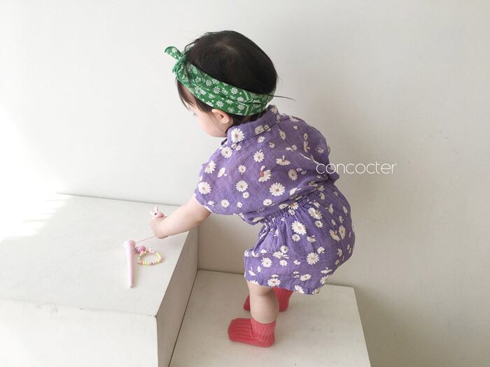 2点セット 半袖 トップス シャツ パンツ ショートパンツ パープル 緑 デイジー サマー 夏物 mi5396681014289