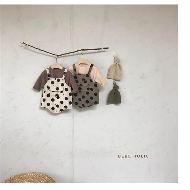 ロンパース コーデュロイ オーバーオール ベージュ ドット柄 オータム 秋物 ウィンター 冬物 mi5325816351655