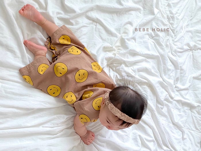 ノースリーブ ロンパース スマイリー スター ブラウン ベージュ コットン ガーリー スウィート キュート カジュアル サマー 夏物 mi5357218160148
