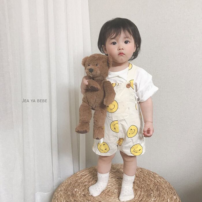 色:スマイリーオーバーオール,白いTシャツ,スマイリービブ+白Tシャツ