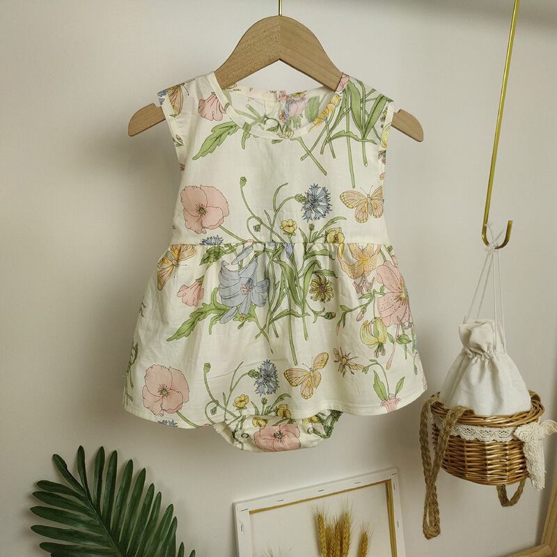 ノースリーブ ロンパース スカート コットン 花柄 紫 ピンク ガーリー スウィート キュート カジュアル サマー 夏物 フラワーデザイン mi5366136155091