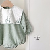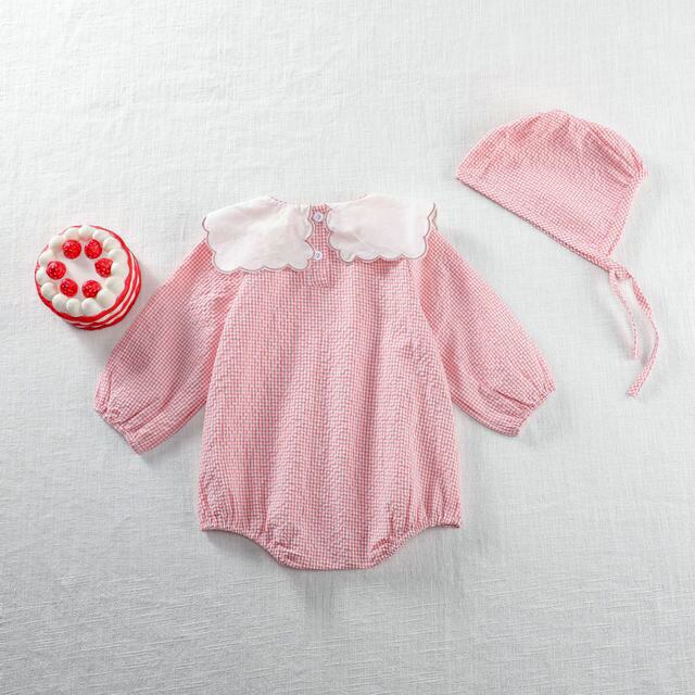 2点セット 長袖 ロンパース 帽子 襟 ピンク 緑 ガーリー スウィート キュート カジュアル スプリング 春物 オータム 秋物 mi5326481873617