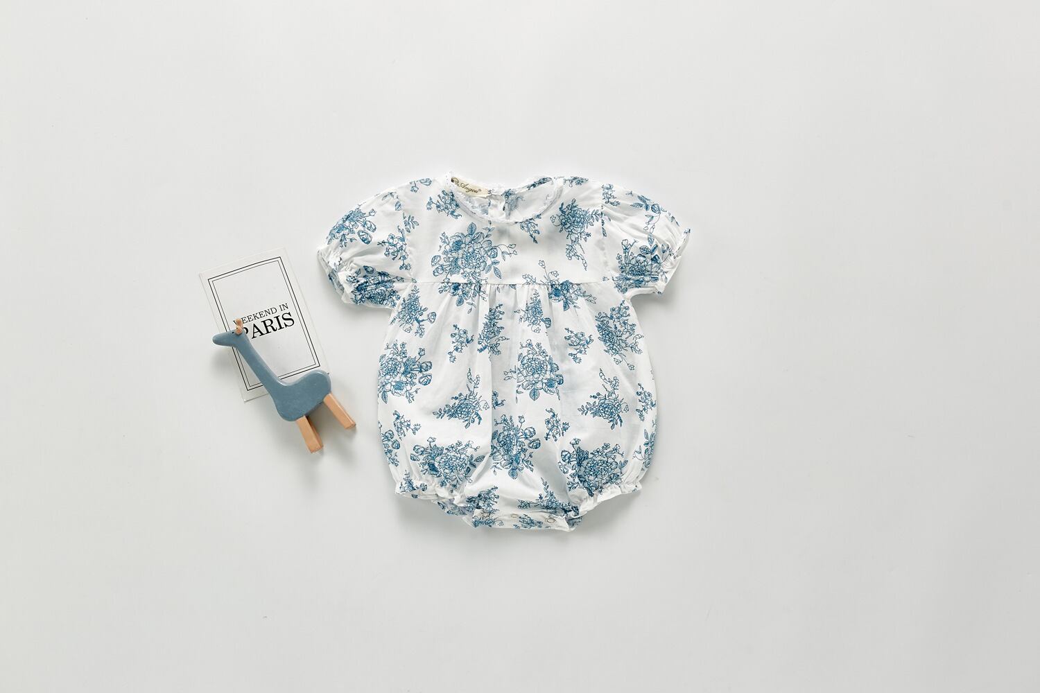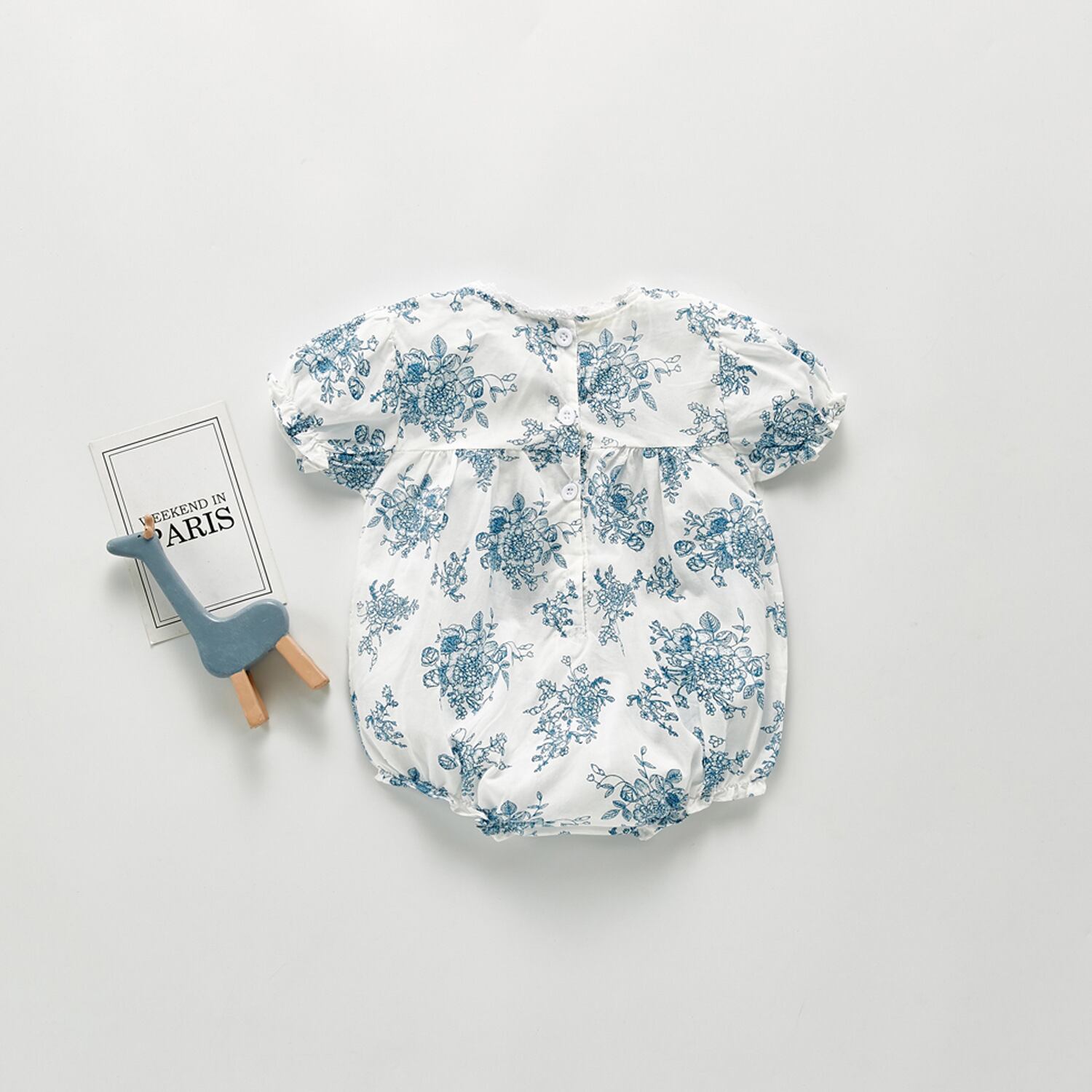 半袖 ロンパース 青 花柄 フラワー レース ガーリー スウィート キュート カジュアル mi5334269276758