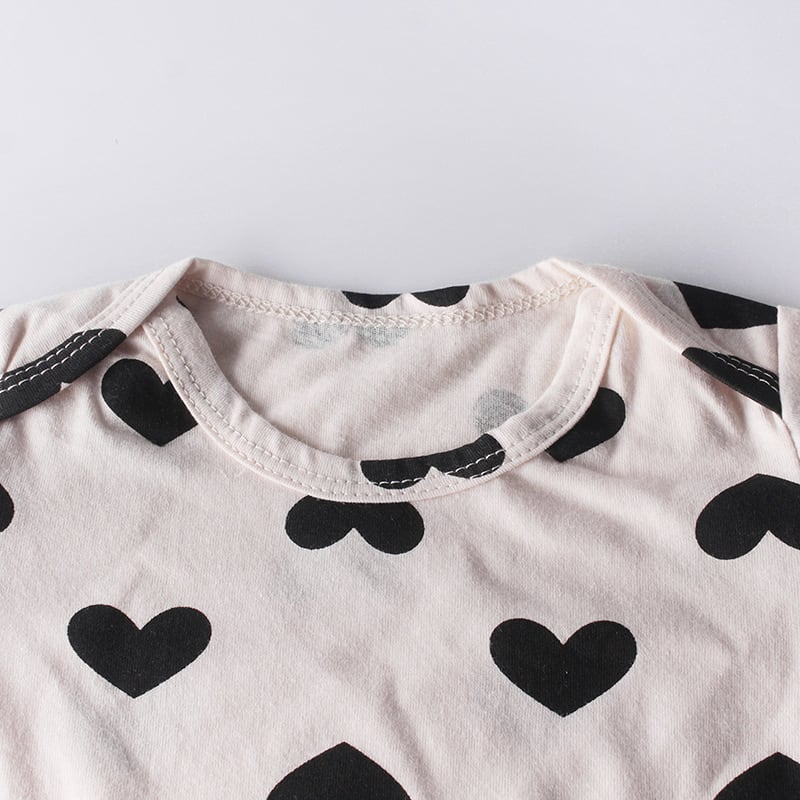 夏 ベビー 半袖 ロンパース 帽子 コットン ハート柄 黒 赤 サマー 夏物 mi5336746005935