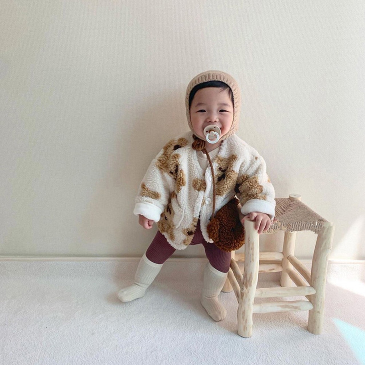 男性と女性の赤ちゃんの漫画のクマの子羊のウールのパッド入りコート、赤ちゃんの暖かくてフリースキルトジャケットカーディガンぬいぐるみフリーストップ mi5330558301454