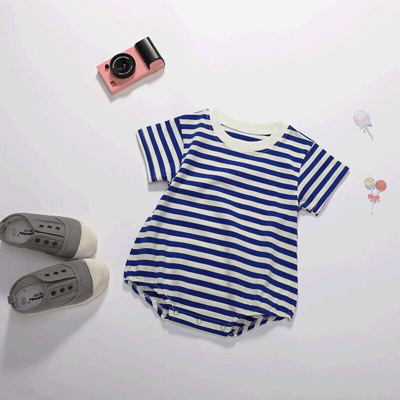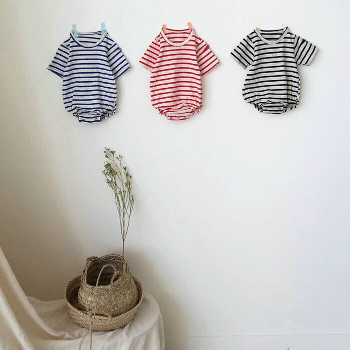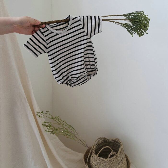 夏の男性と女性の赤ちゃん半袖ストライプロンパースクロール服ベビーエインスタイルルーズファート服ワンピース薄片潮 サマー 夏物 mi5313123574715
