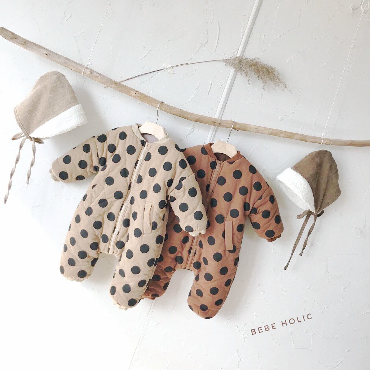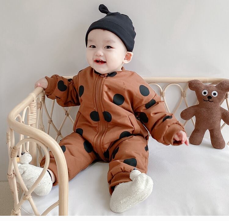 冬のメンズとレディースのベビー水玉模様とベルベットの厚みのあるワンピースジャケットベビーエインスタイルのパッド入りジャケットコットンロンパースアウトドアウェア ウィンター 冬物 mi5329854305714