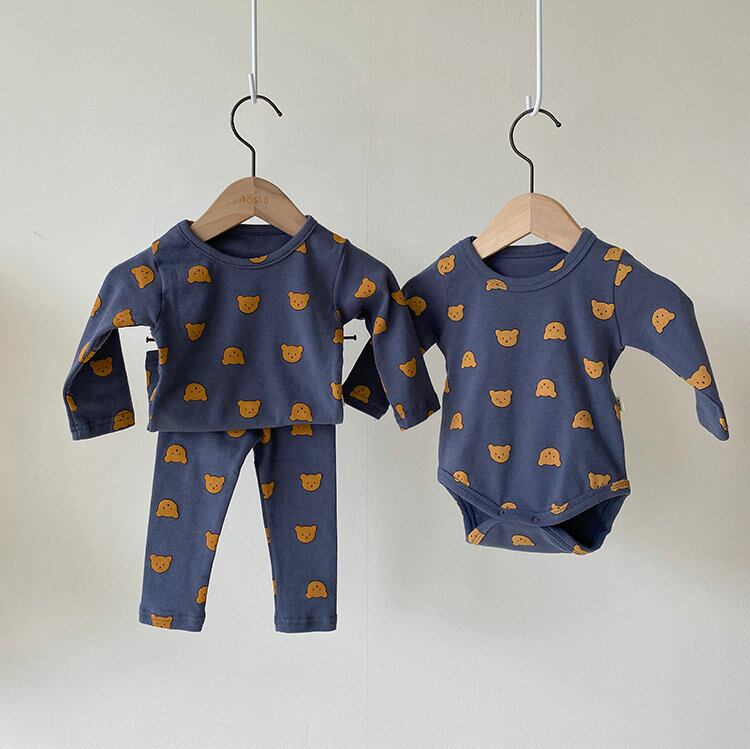 秋の男性と女性の赤ちゃん漫画長袖コットンホームサービスツーピースベビーかわいい秋の服長袖ツーピーストレンド ロング 大人ガーリー スウィート キュート カジュアル オータム 秋物 mi5341056704340