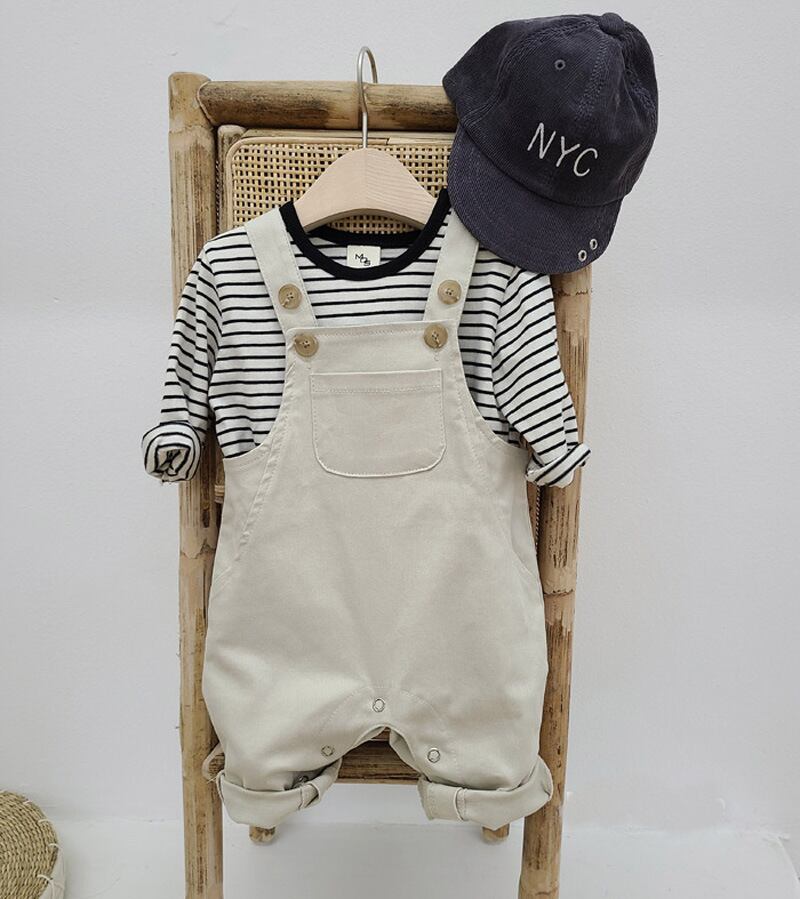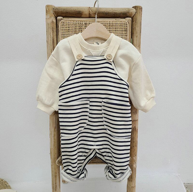 秋冬メンズ&レディースベビーストライプサスペンダーパンツワンピーススーツベビーオールマッチカジュアルツーピーススーツプラスベルベット オータム 秋物 ウィンター 冬物 mi5324501341105