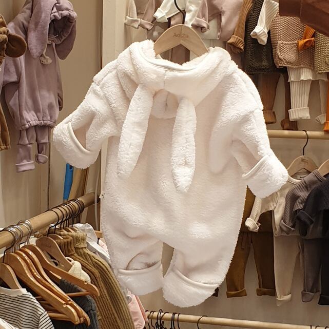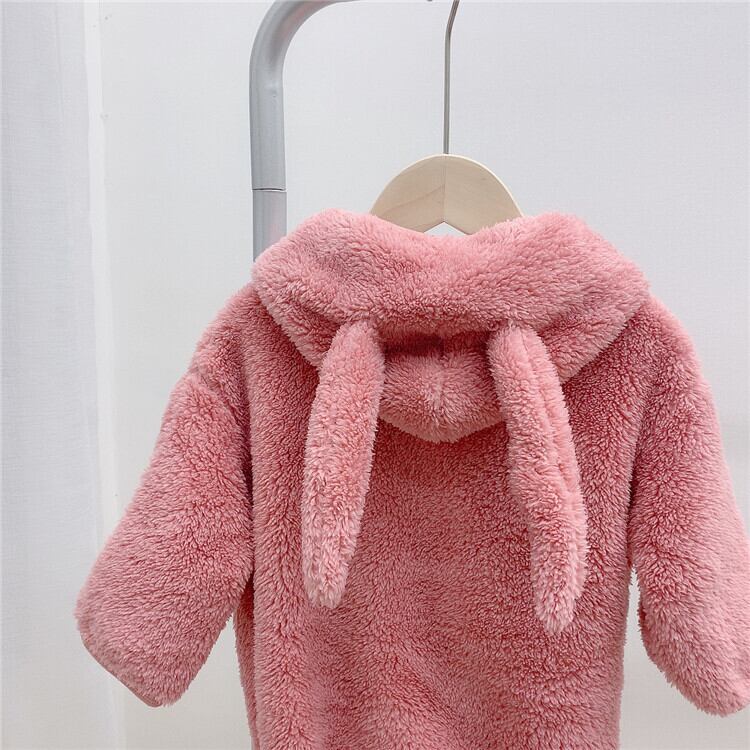 秋冬の男性と女性の赤ちゃんかわいいウサギとフリースワンピースの赤ちゃん厚い暖かいロンパーロンパージャケットバージョン 大人ガーリー スウィート キュート カジュアル オータム 秋物 ウィンター 冬物 mi5357363879910
