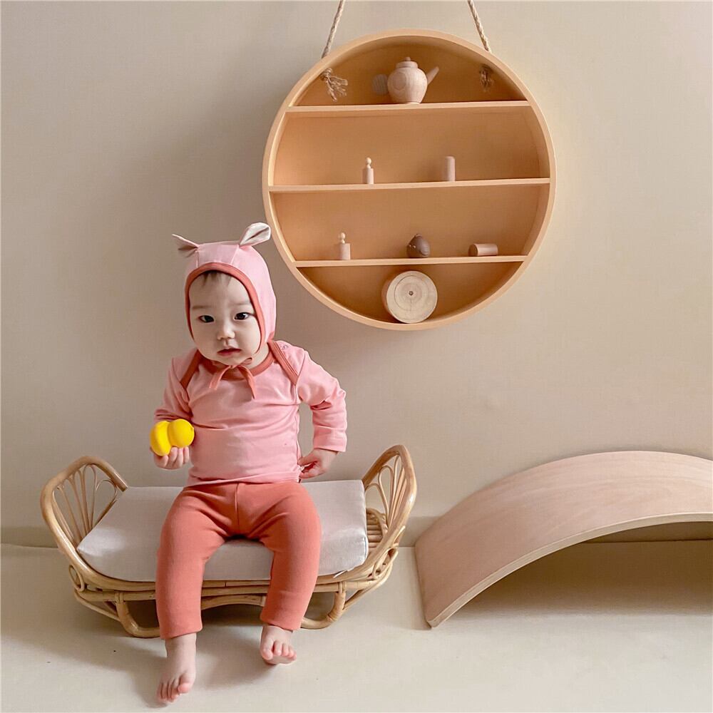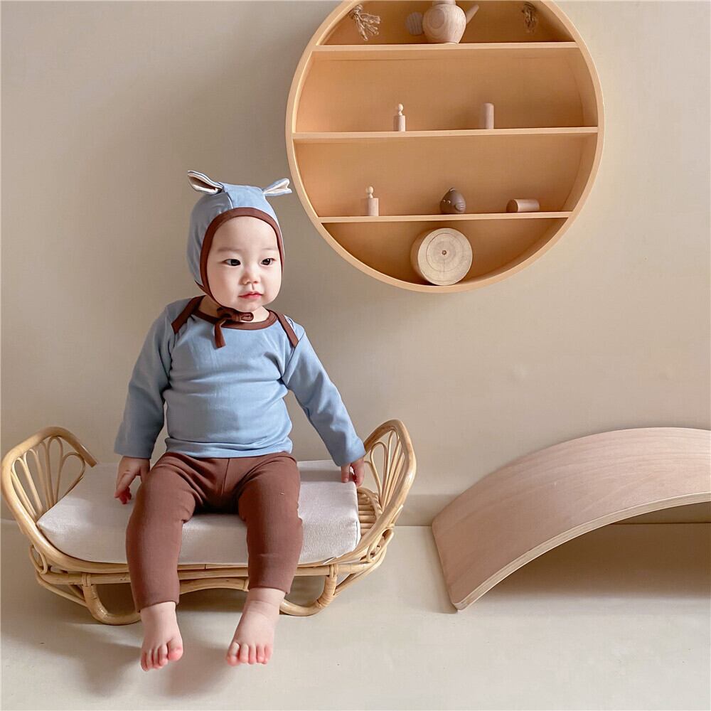 ins春秋コットン下着新生児スーツかわいいコントラストカラーベビーホームサービス秋の服ロングパンツスリーピーススーツ 大人ガーリー スウィート キュート カジュアル スプリング 春物 オータム 秋物 mi5373464587335
