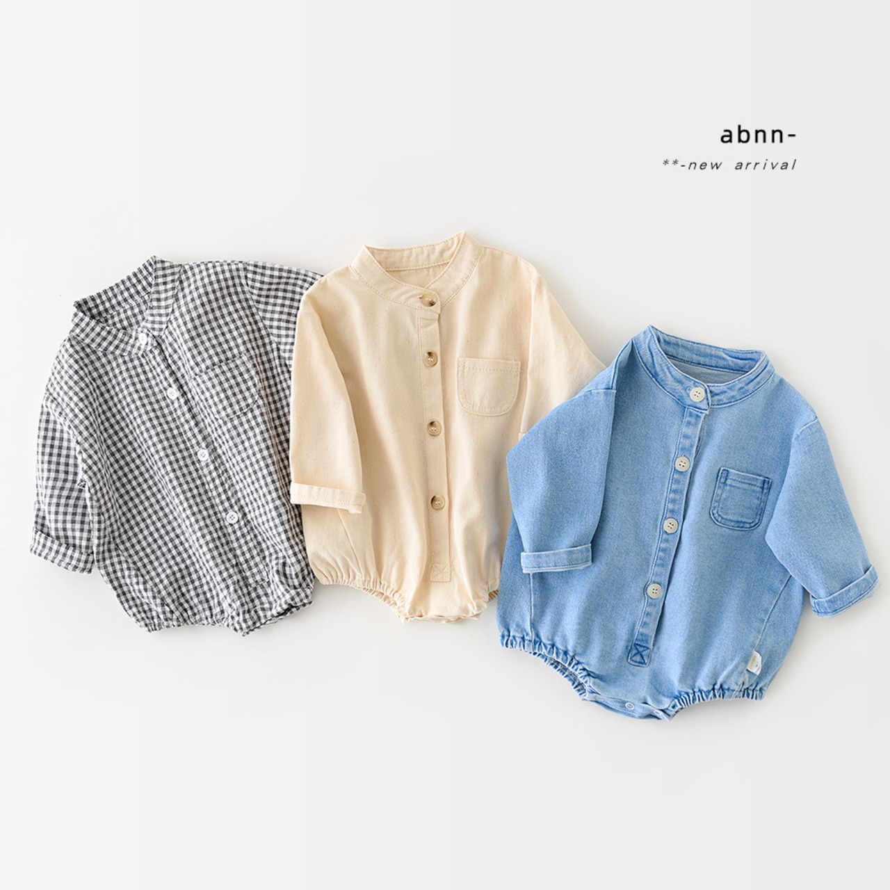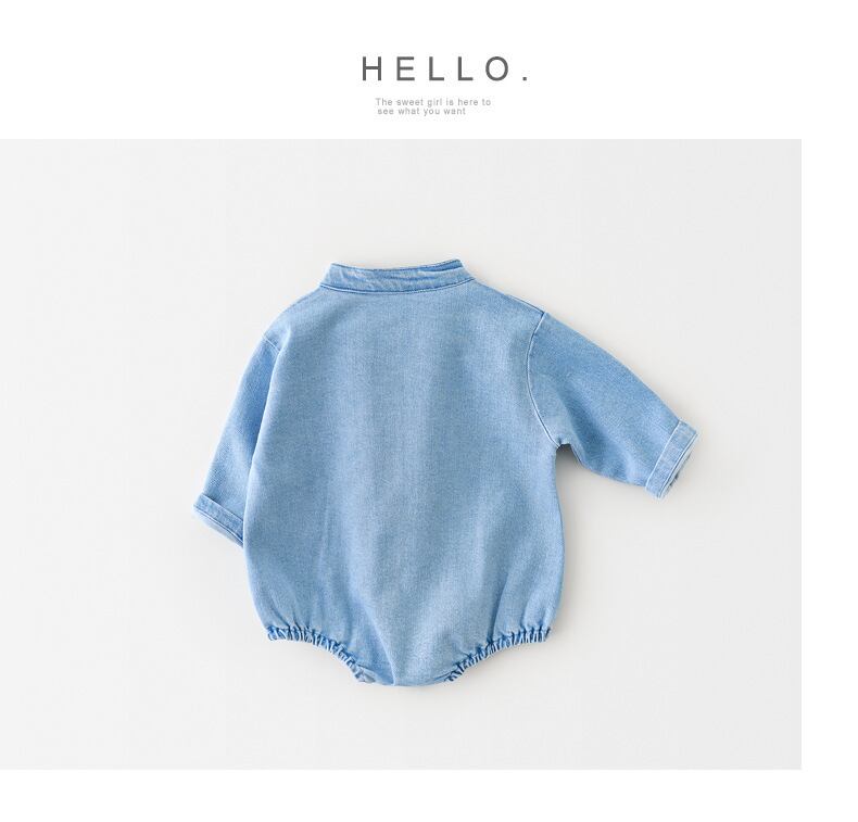 ins21春ベビーカジュアルデニムラペル長袖ロンパースメンズ&レディースベビートライアングルバッグおならワンピースロンパース ロング スプリング 春物 mi5344209865186