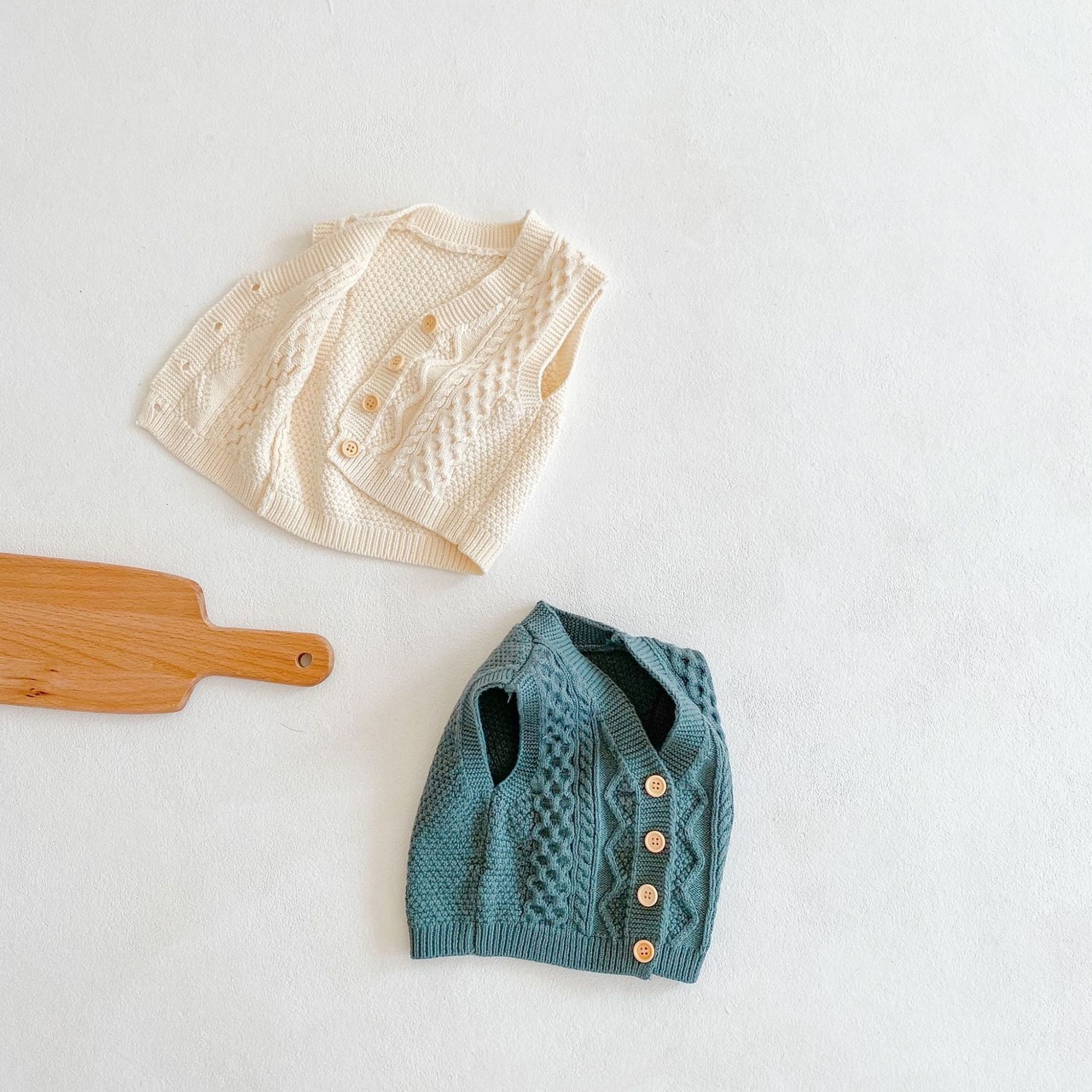 Vネックノースリーブニットセーター カーディガンスプリング 春物 キッズ mi5382816764734