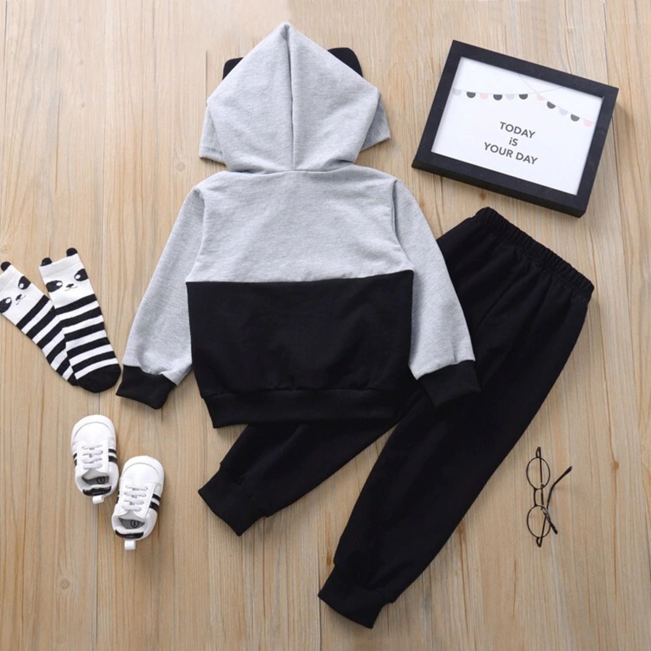 オータムウィンターセット フード長袖スリーブスウェット ロング 秋物 冬物 キッズ mi5364700445199
