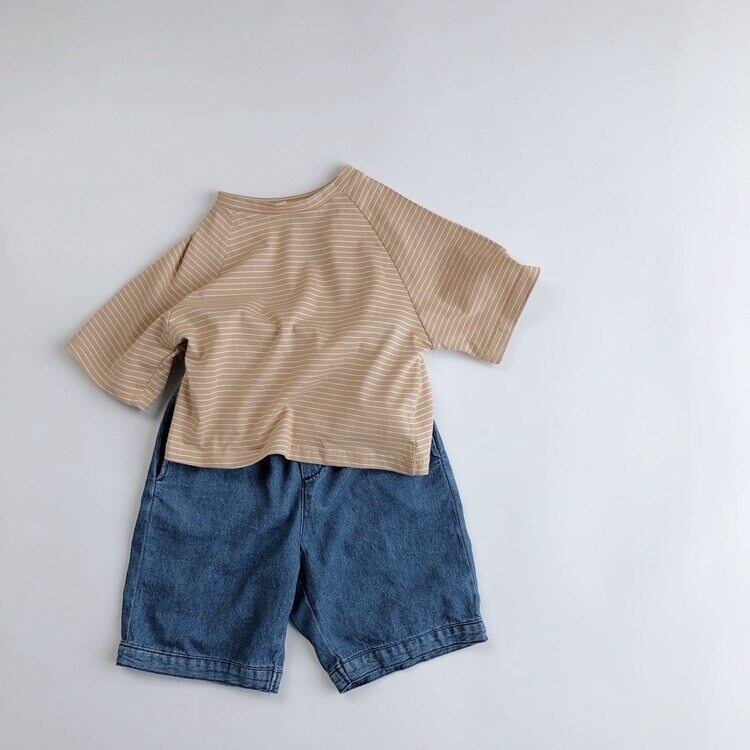 Tシャツ シャツ サマーストライプトップス 半袖スリーブ ショート コットン ハーフスリーブ 夏物 キッズ mi5317870871026