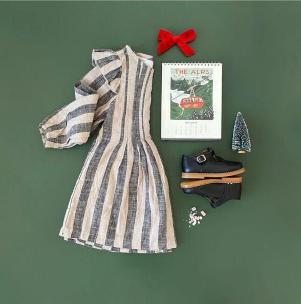 ドレス ストライプOネック長袖スリーブドレス ワンピース ロング キッズ mi533632684281