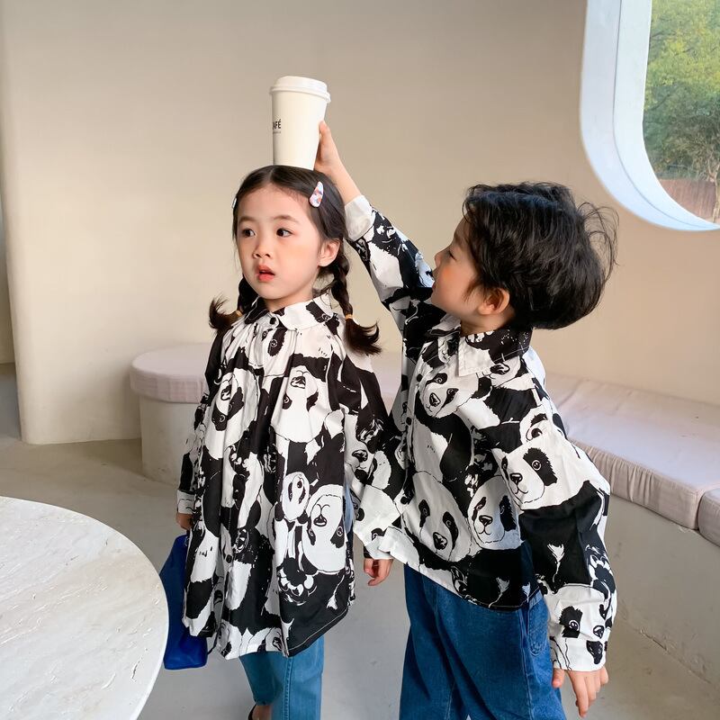 スプリングオータムトップス プリント柄長袖スリーブシャツ ロング コットン 春物 秋物 キッズ mi5368512211078