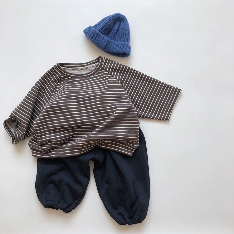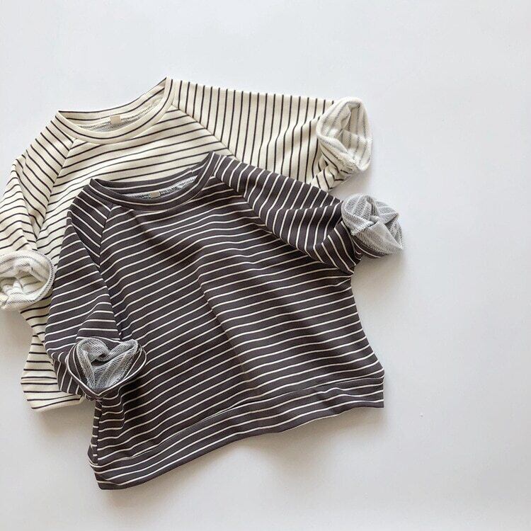 スプリングストライプ長袖スリーブシャツトップス ロング コットン 春物 キッズ mi537807625193