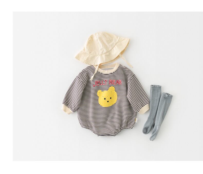 スプリング長袖スリーブプリント柄ストライプジャンプスーツ オールインワン ロング コットン 大人ガーリー スウィート キュート カジュアル 春物 mi5387372134731
