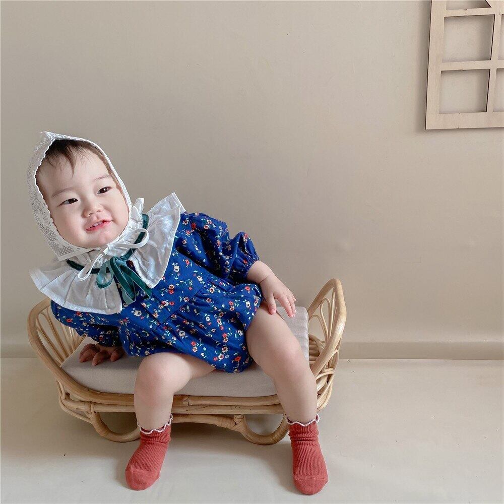 フローラルプリント柄ラッフル長袖スリーブジャンプスーツ オールインワン ロング コットン 花柄 mi5380145607622