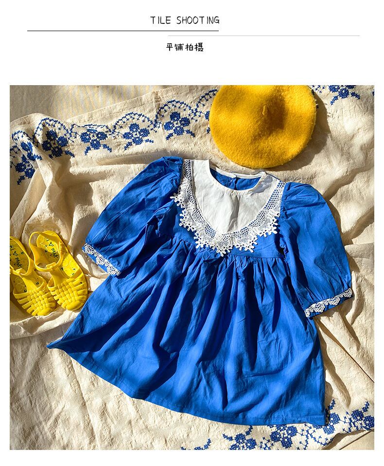 スプリングドレス ソリッド 長袖スリーブレース ロング 春物 キッズ ソリッドカラー mi5359493279570