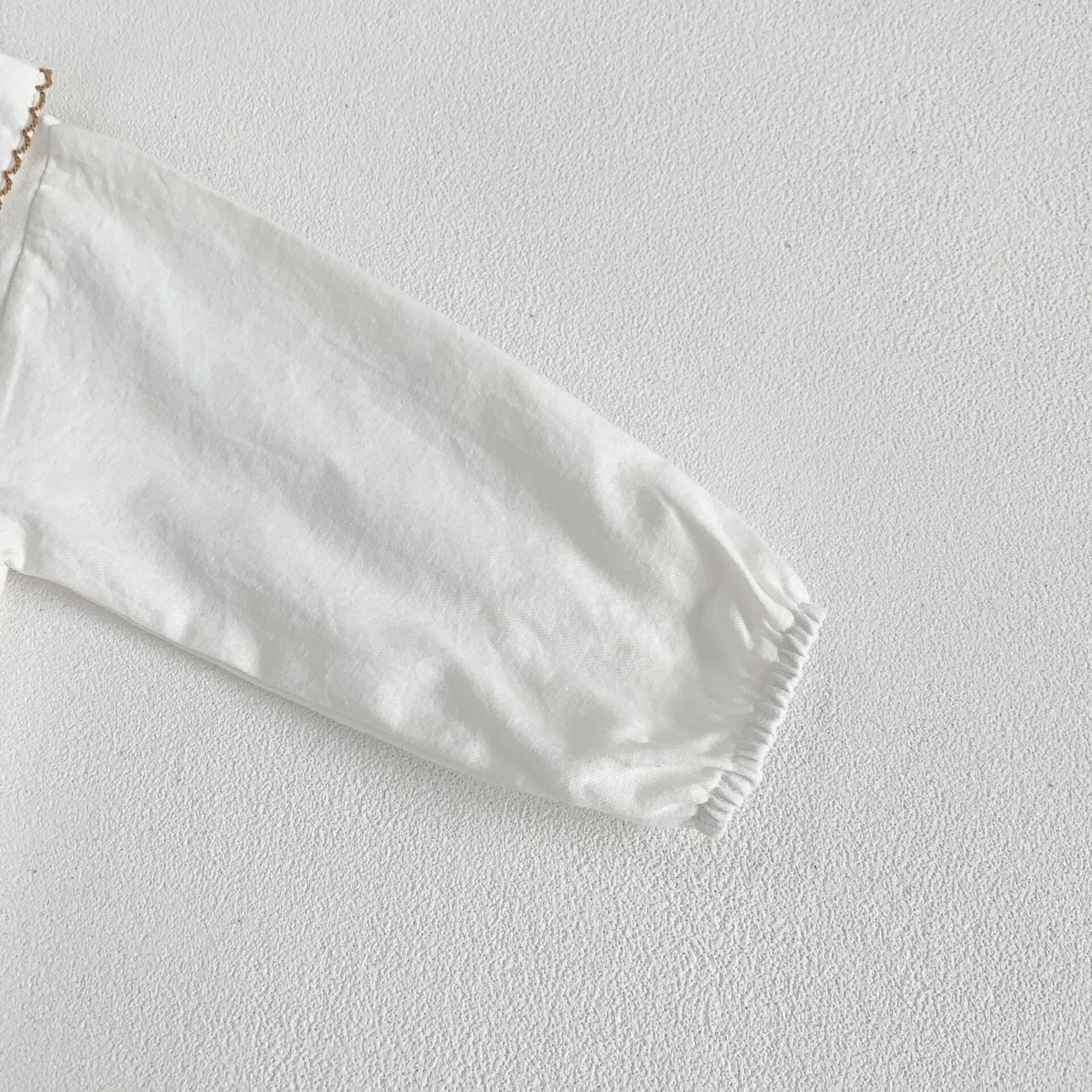 スプリングカラーホワイトジャンプスーツ オールインワン ソリッド レッド コットン 刺繍 春物 キッズ ソリッドカラー mi539064665249