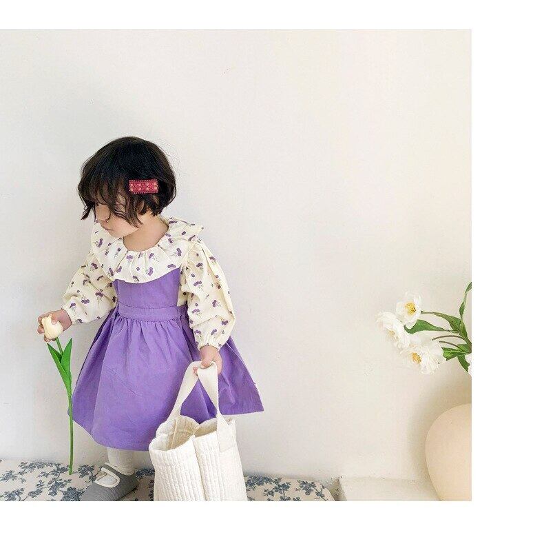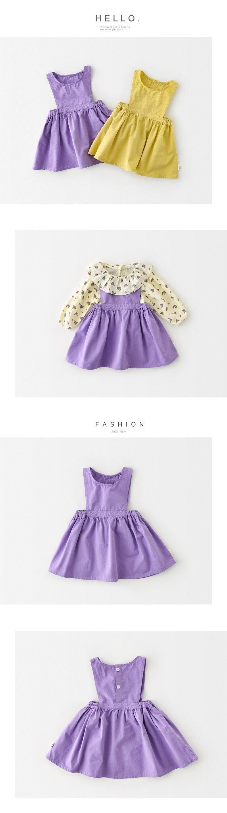 スプリングソリッド カラーノースリーブドレス ドレス ワンピース コットン 春物 キッズ ソリッドカラー mi5316253552219