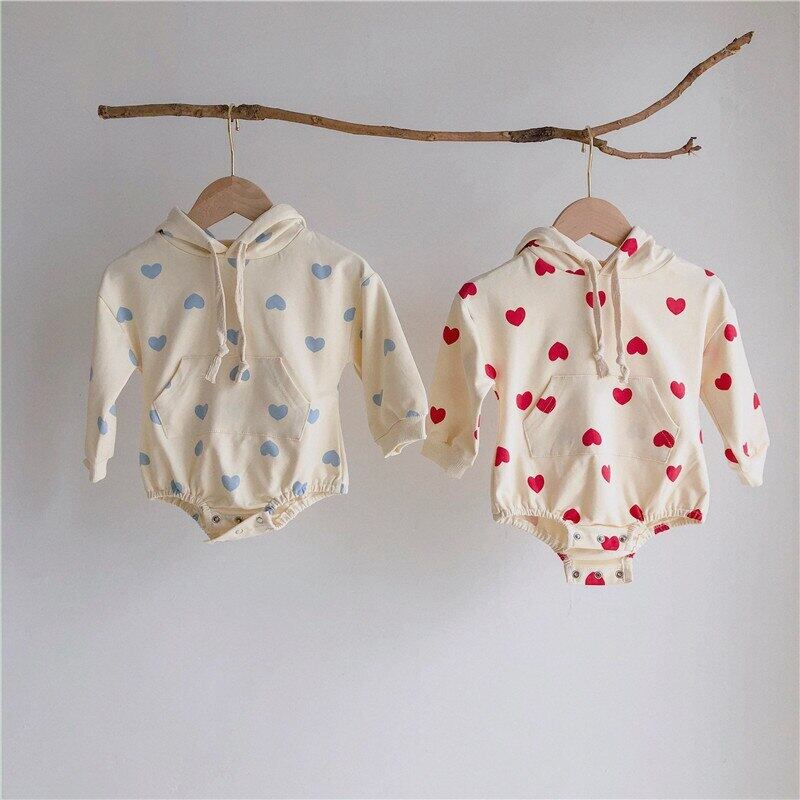 オータムフード長袖スリーブハートプリント柄ジャンプスーツ オールインワン ロング 秋物 mi5325094008593