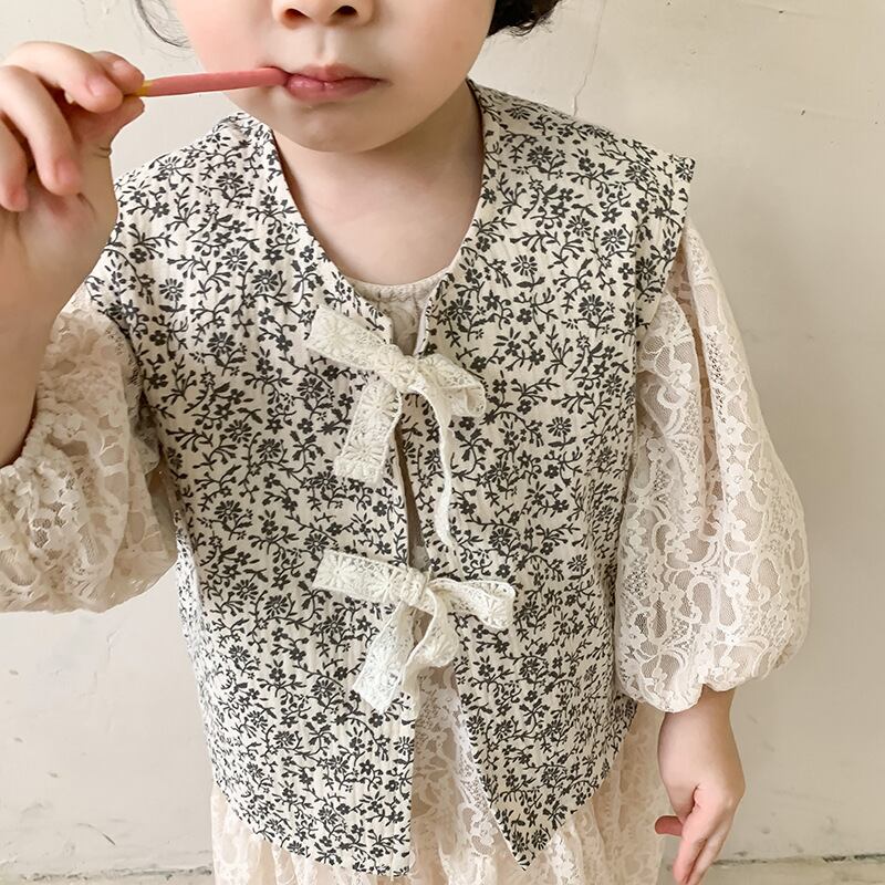 スプリングジャケット ノースリーブコート レースフローラル コットン 春物 キッズ 花柄 mi5393706433936