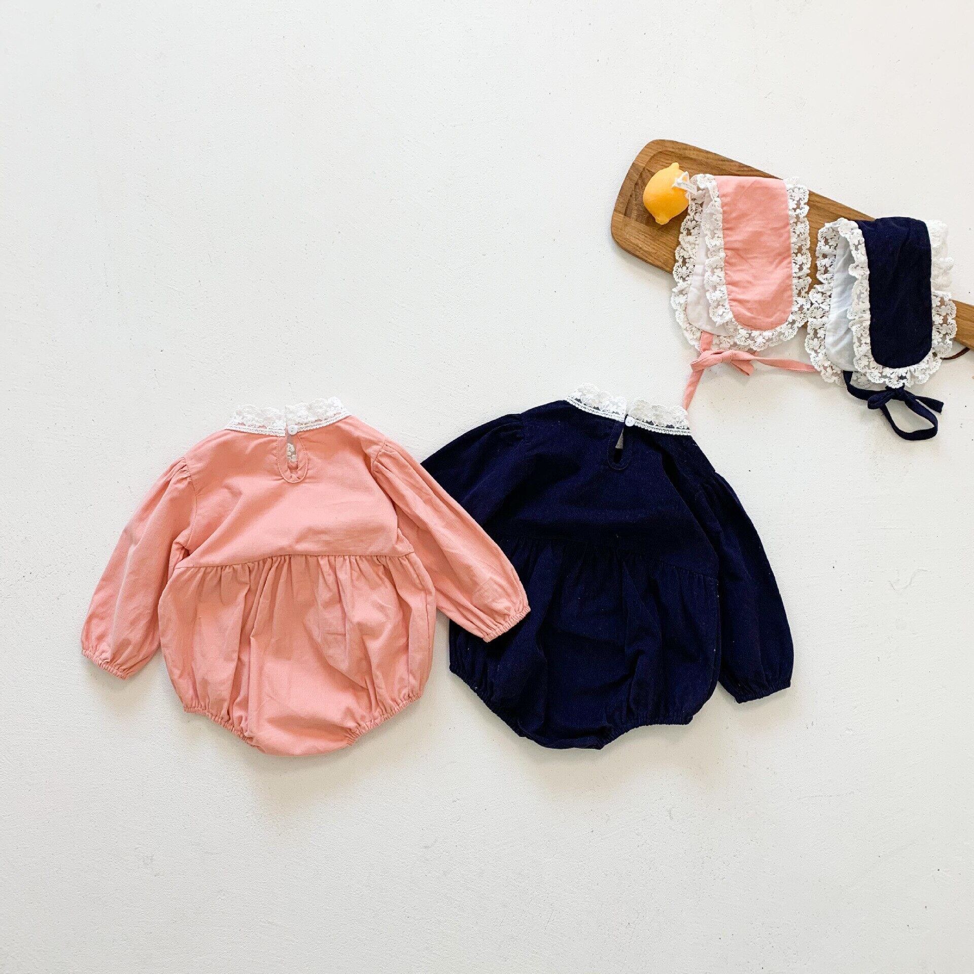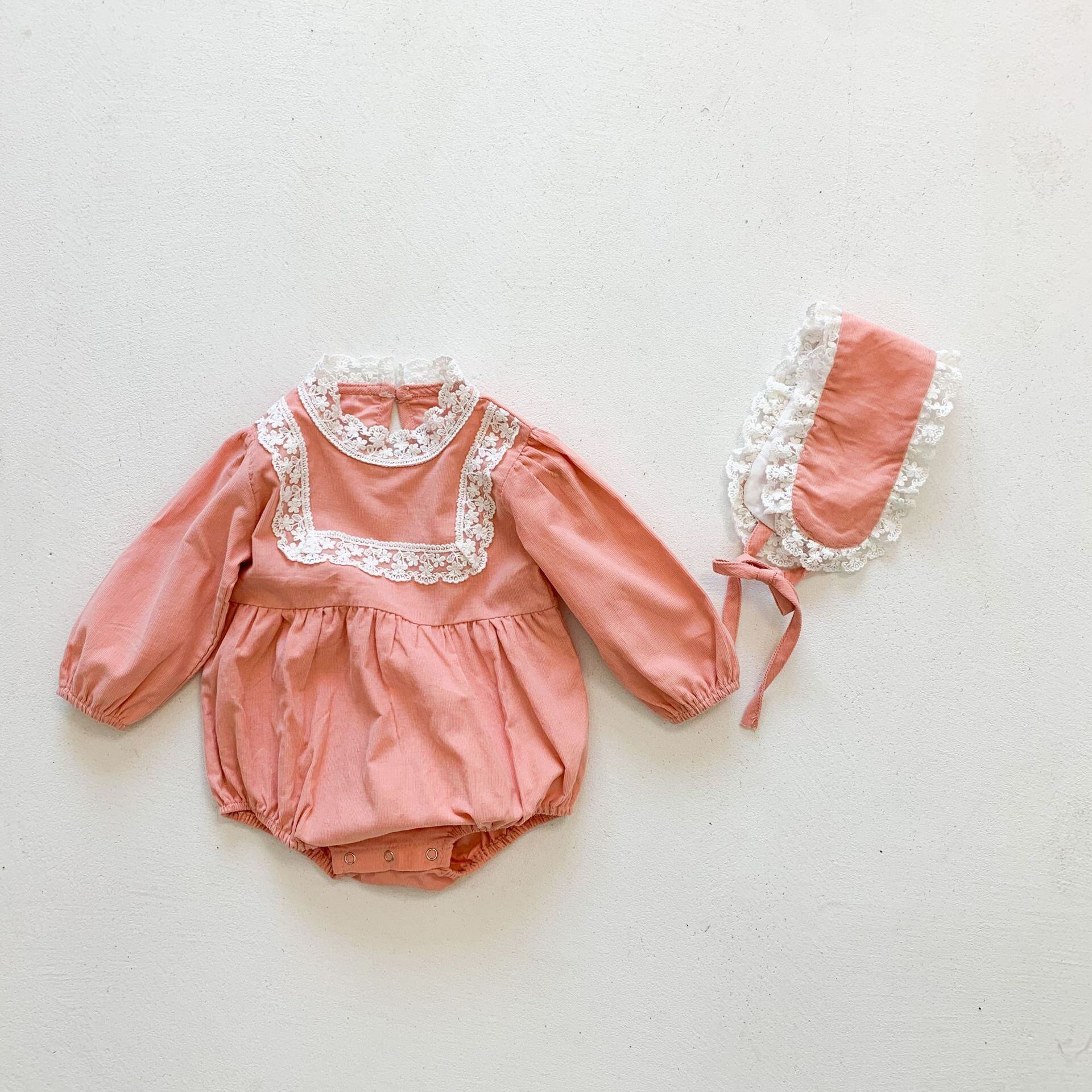スプリング長袖スリーブコーデュロイジャンプスーツ オールインワン レース ロング 帽子 春物 mi5371194006379