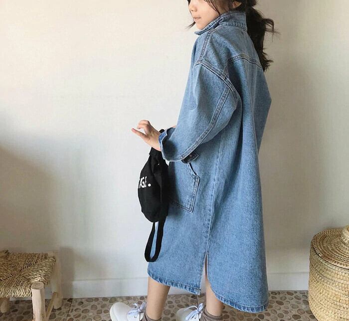 ドレス ワンピース ジーンズ オータム長袖スリーブポケットルーズ ロング 秋物 キッズ mi5379811459083