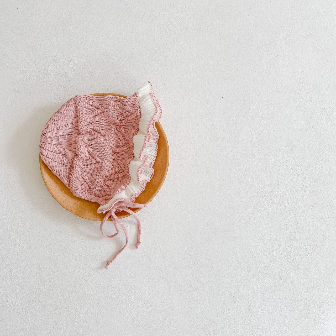 スプリングニットレースキャップ コットン 帽子 大人ガーリー スウィート キュート カジュアル 春物 キッズ ボンネット ヘアアクセサリー レースアップ mi5363437750995