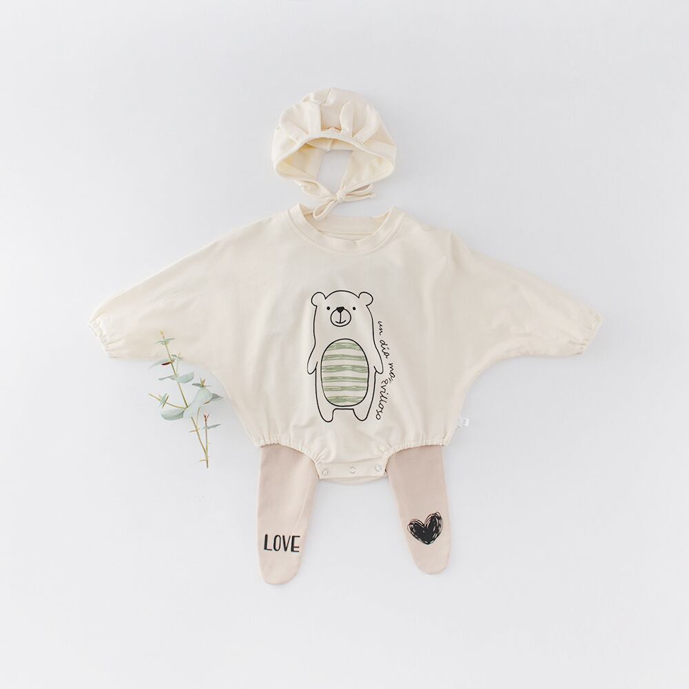スプリングプリント柄長袖スリーブジャンプスーツ オールインワン セット ロング 帽子 春物 mi5315332212385