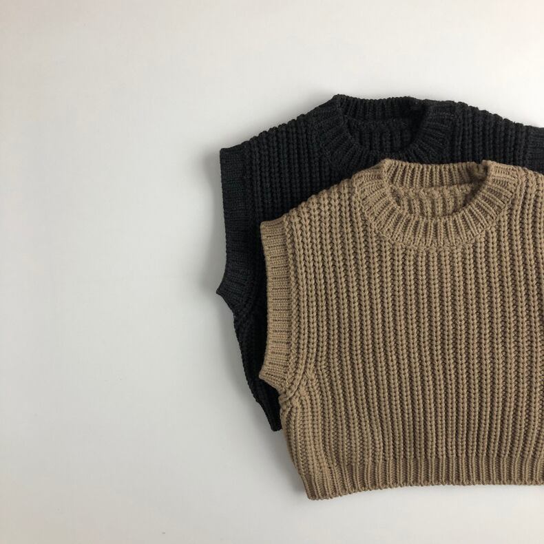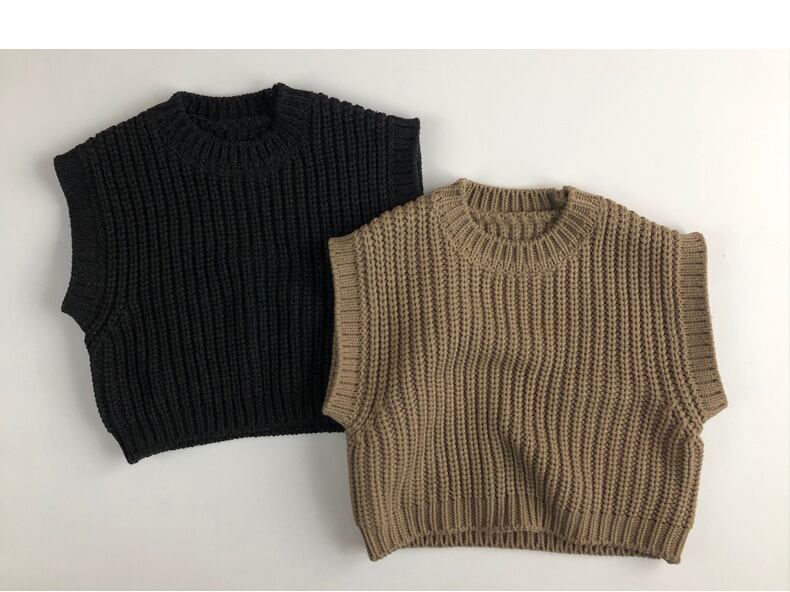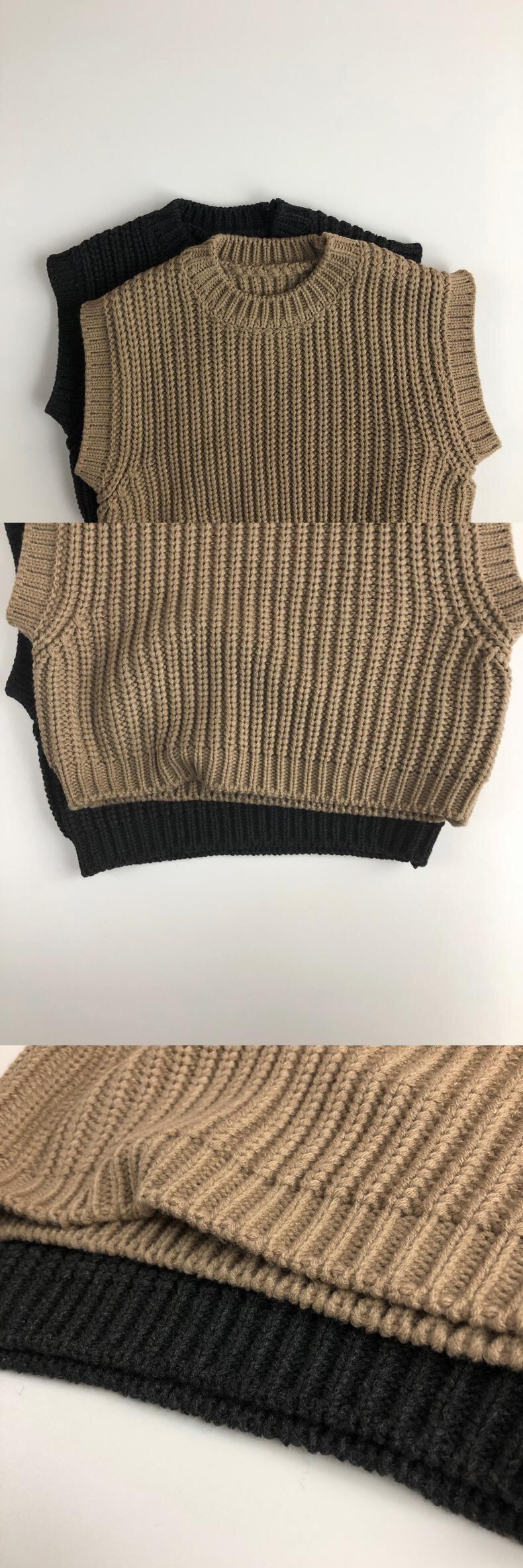 スプリングセーター ニットOネックソリッド カラーノースリーブ 春物 キッズ ソリッドカラー mi5370020464594