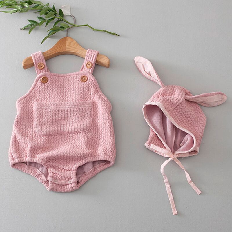 スプリングソリッド ジャンプスーツ オールインワン ノースリーブポケットオーバーオール セット 帽子 春物 キッズ ソリッドカラー mi5345838760050